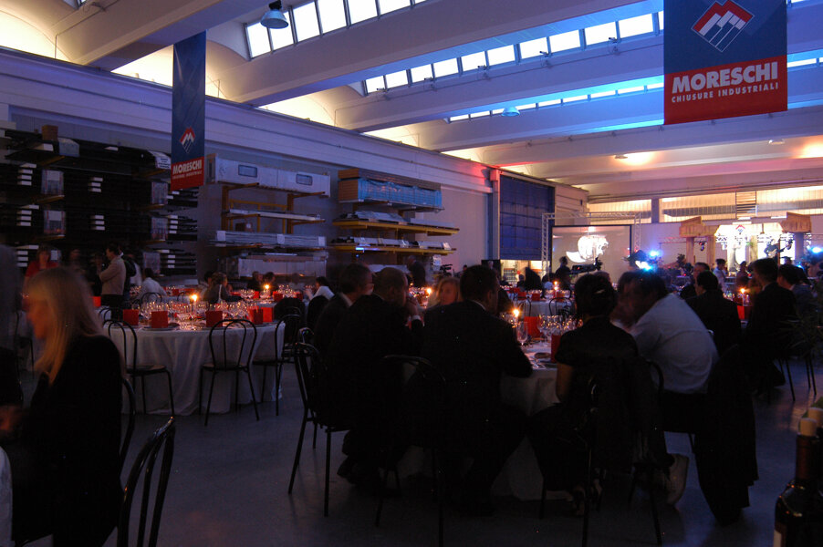 Cena di gala aziendale  organizzata  da Eventi Reali a Milano.  Gli ospiti sono stati accolti dalle nostre bellissime hostess per prendere posto a tavola in una direttamente nello stabilimento aziendale che il nostro staff ha saputo trasformare in una elegante location in grado di ospitare le cene più raffinate. Durante la serata si sono succeduti numerosi artisti sul palco d'eccezione realizzato da Eventi Reali seguendo le direttive del cliente.  Giocolieri, comici e personaggi VIP per concludere la serata con il taglio della torta disegnata e realizzata dai nostri cake designer.